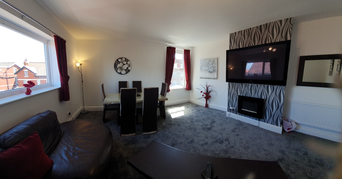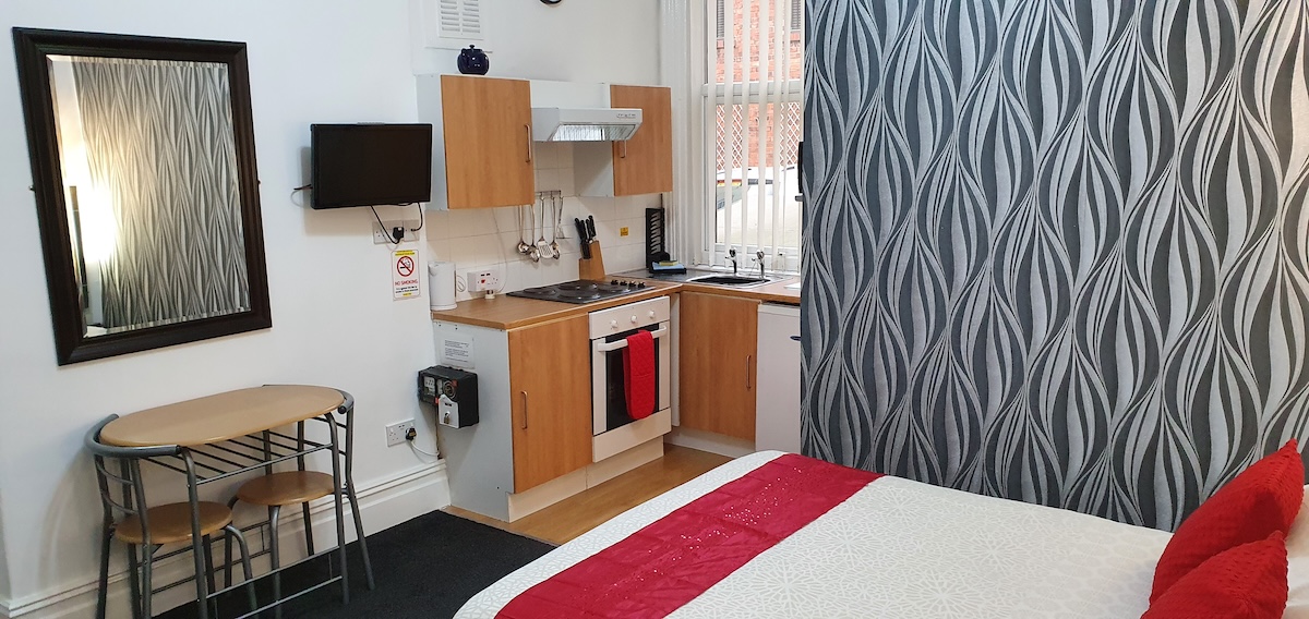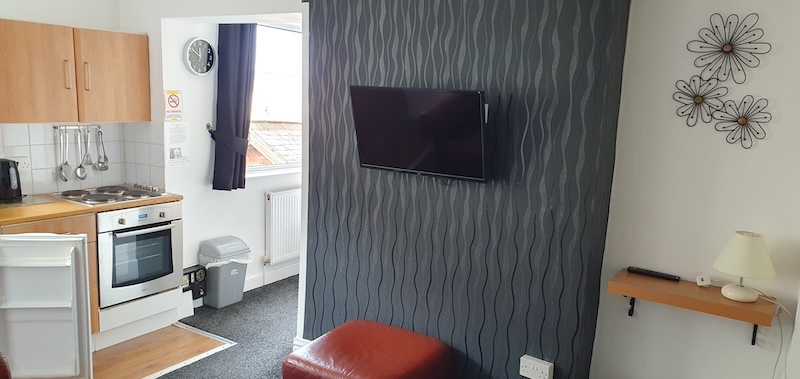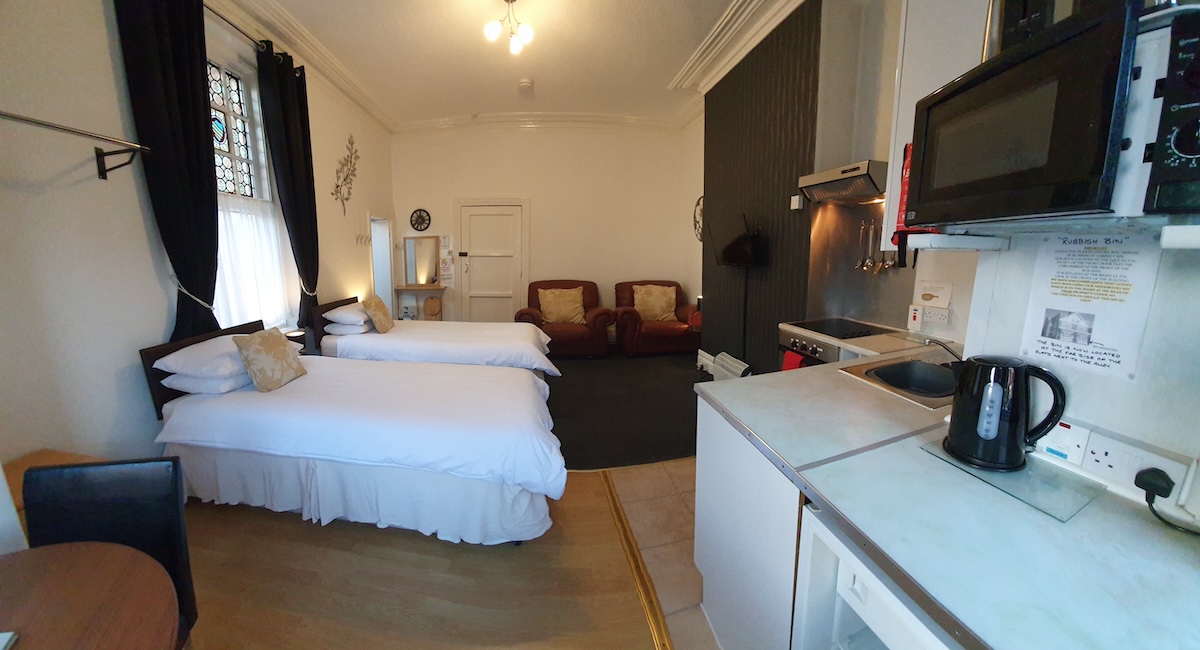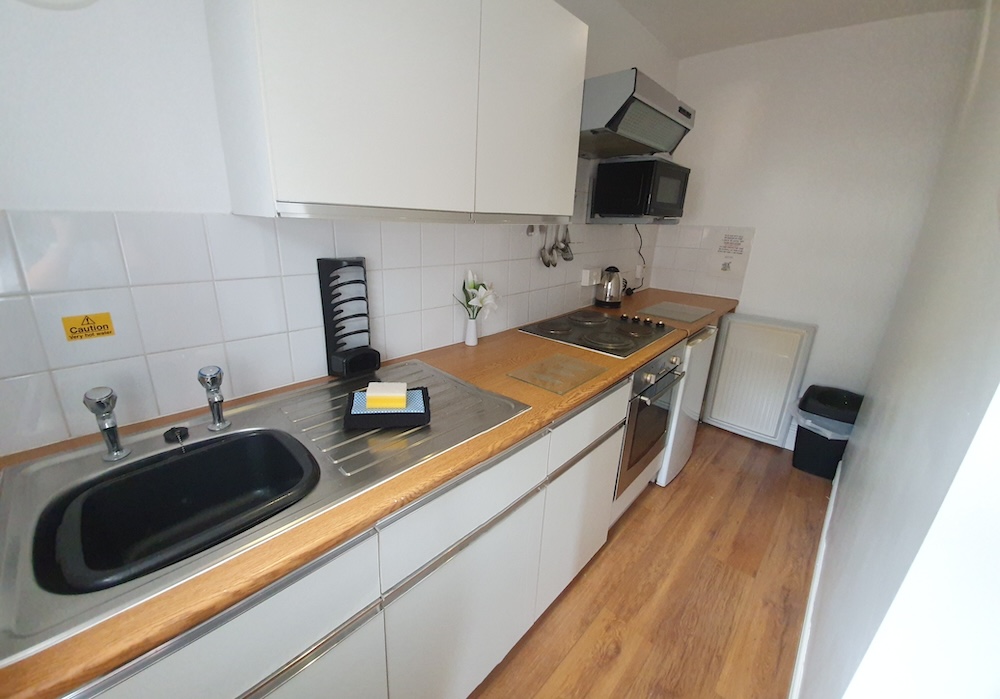 These modern apartments are fitted with Electric Cookers, Kettles, Toasters, Ironing Facilities, Microwaves, Electric Fires, Fridges and Free view Television, They are completely furnished and tastefully decorated.