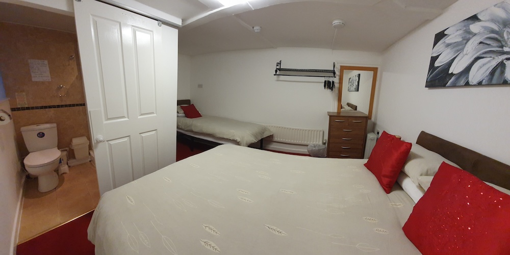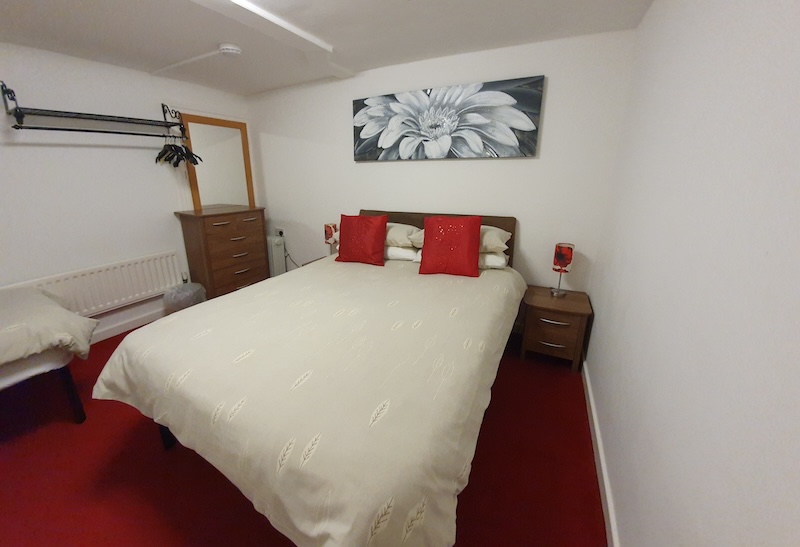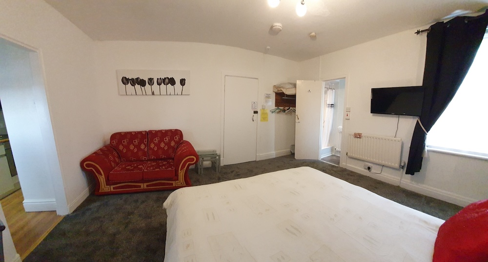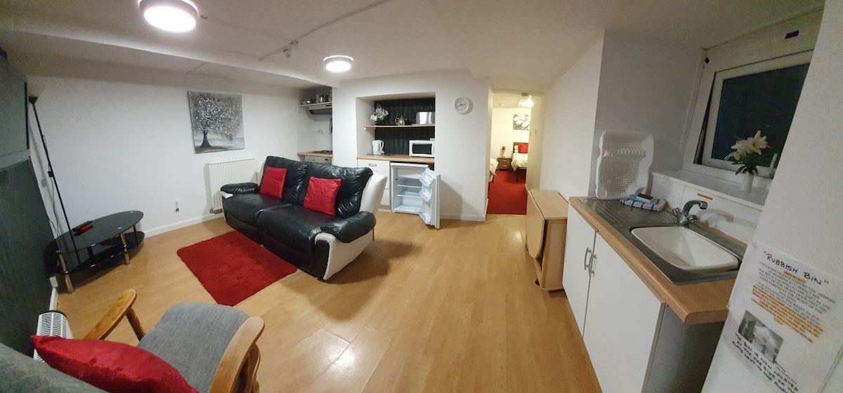 Side flat – Spacious studio flat, kitchen area, own shower and toilet.