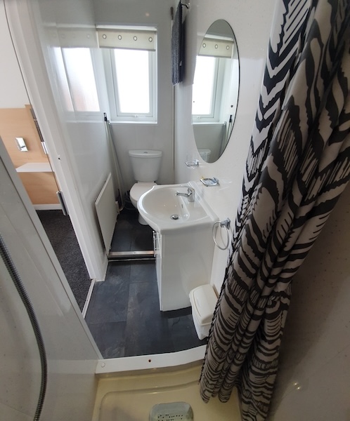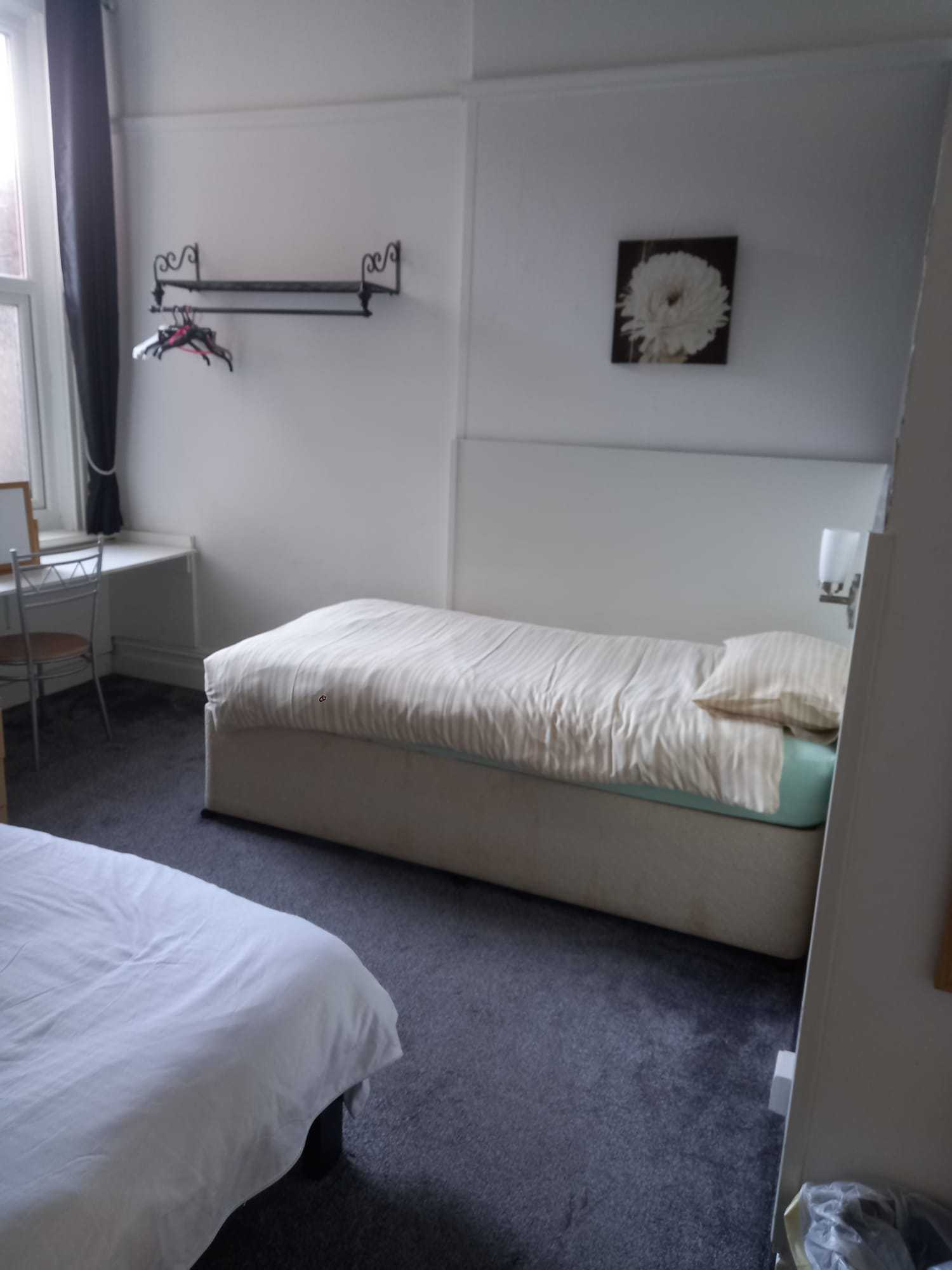 Side flat. Spacious lounge with bed. Separate dining/kitchen. Own shower and toilet.
