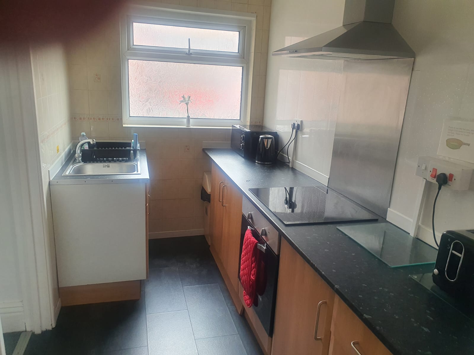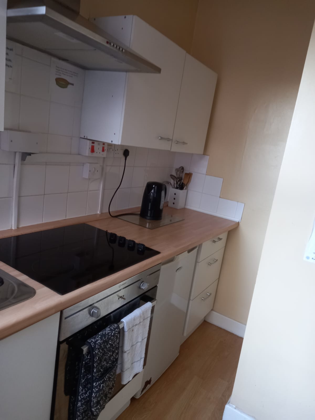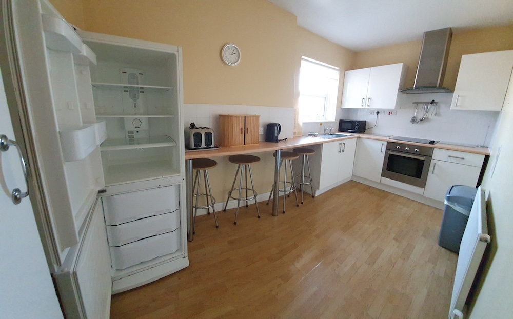 Fully fitted kitchen with built in oven & hob, fridge, microwave.