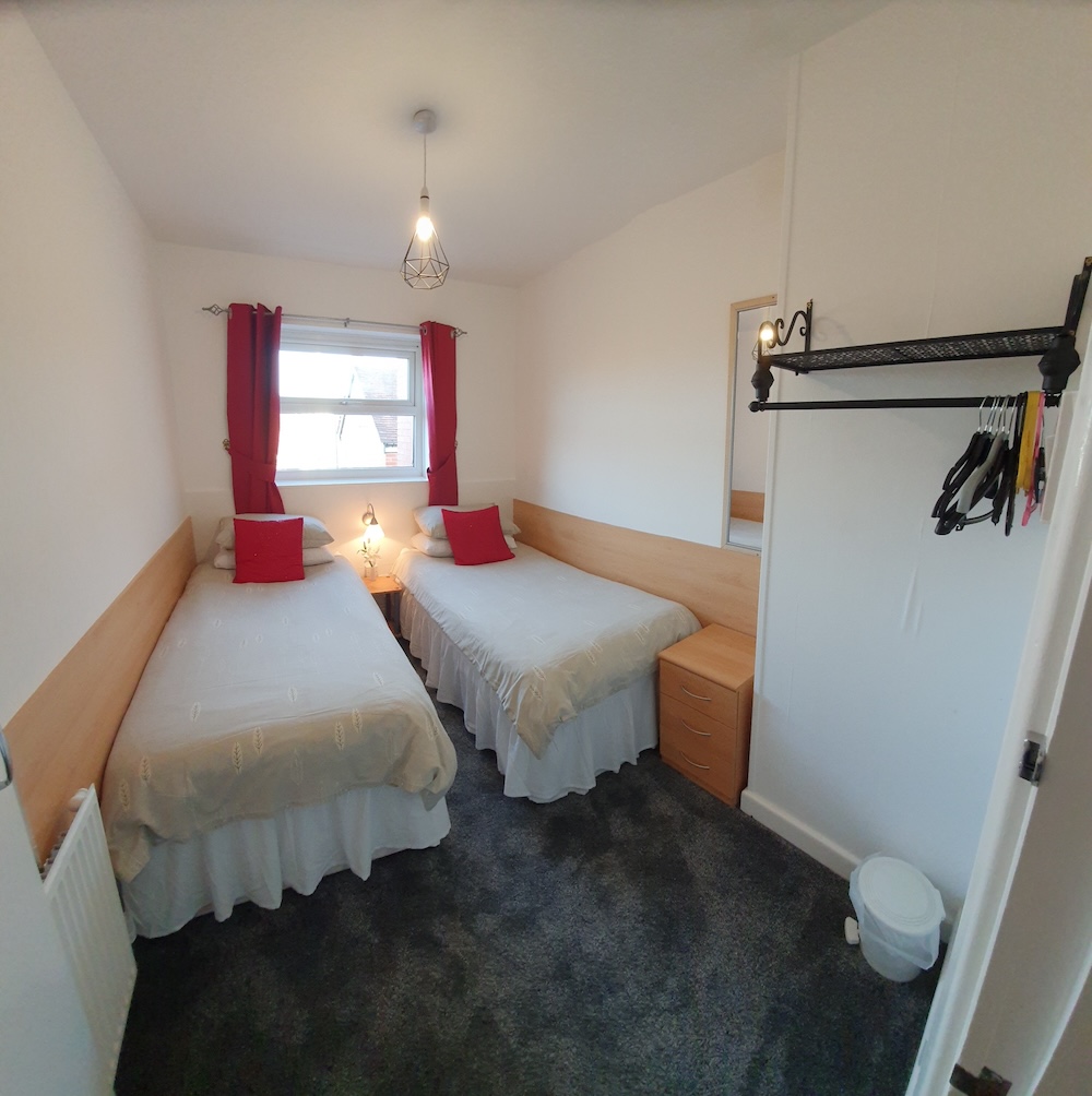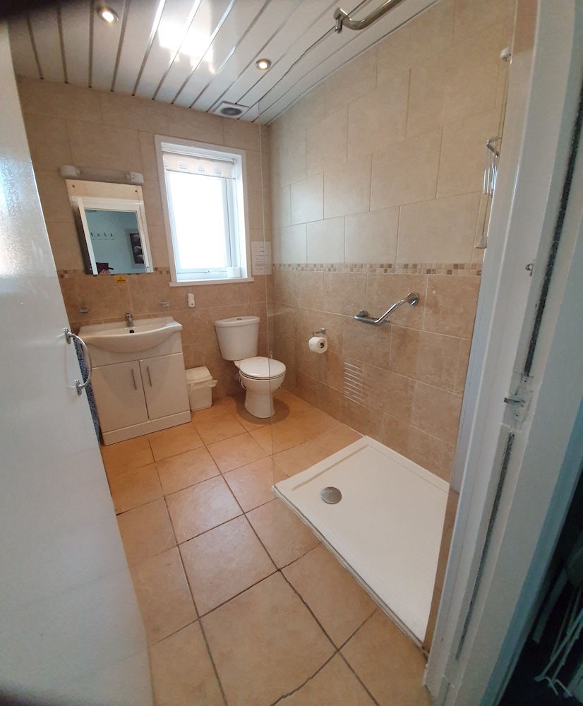 Front flat – Spacious lounge, separate kitchen, own shower and toilet. 2 Bedrooms.