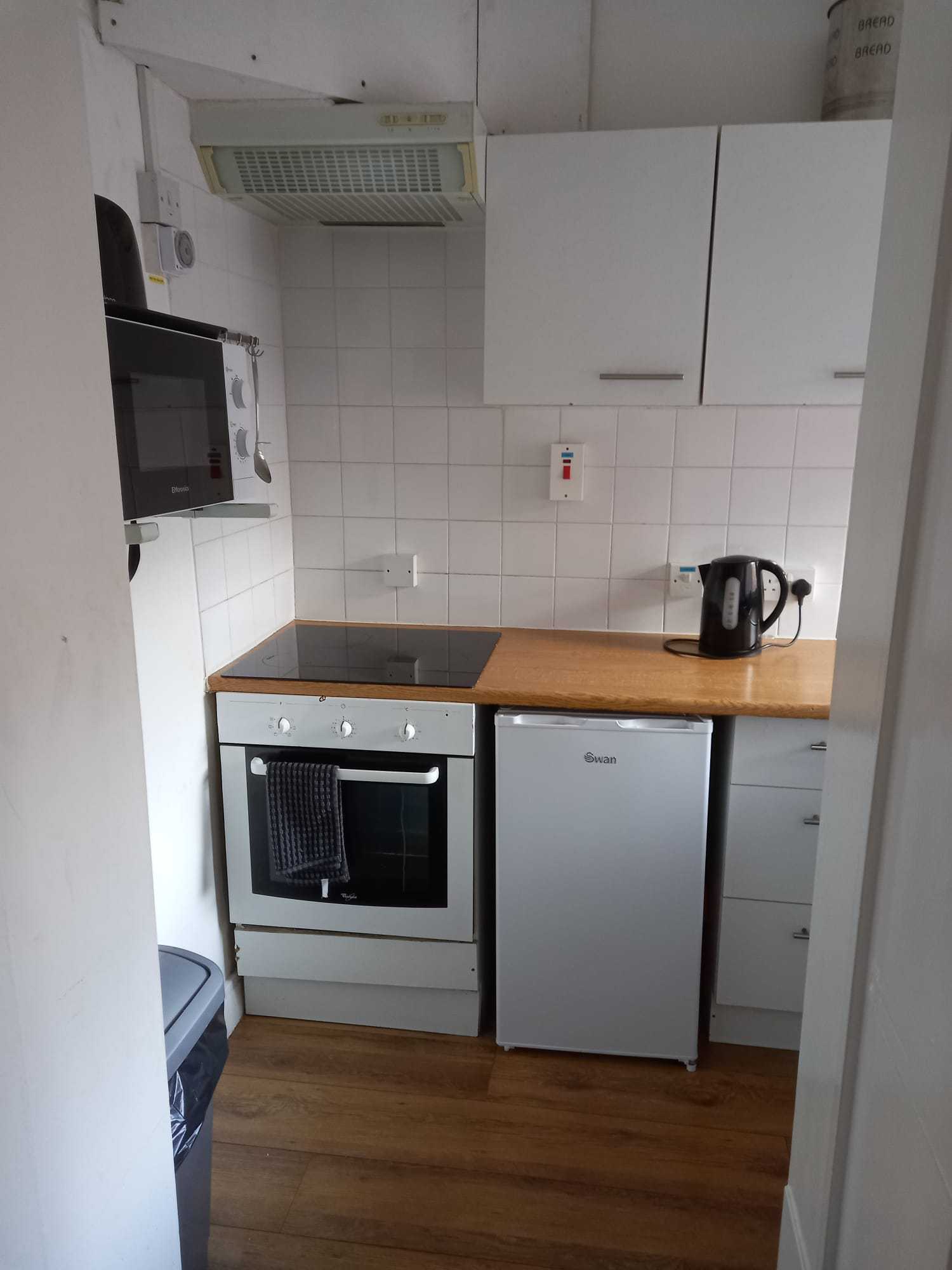Side flat. Lounge with kitchen area through to bedroom, en-suite shower and toilet.